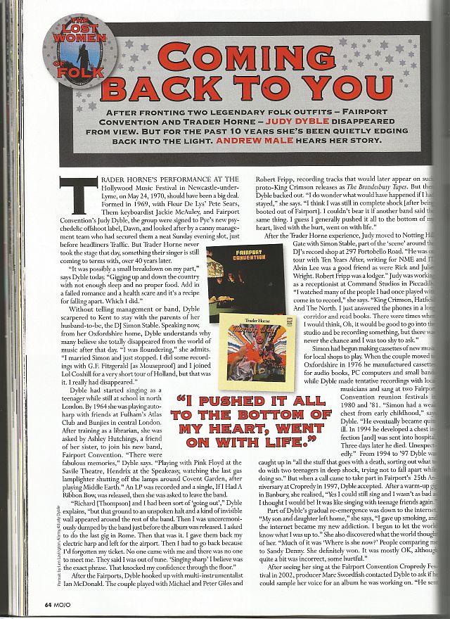 - So let me quote this from TRADER HORNE’s cover: “Judy Dyble is a semi fairy tale character”…