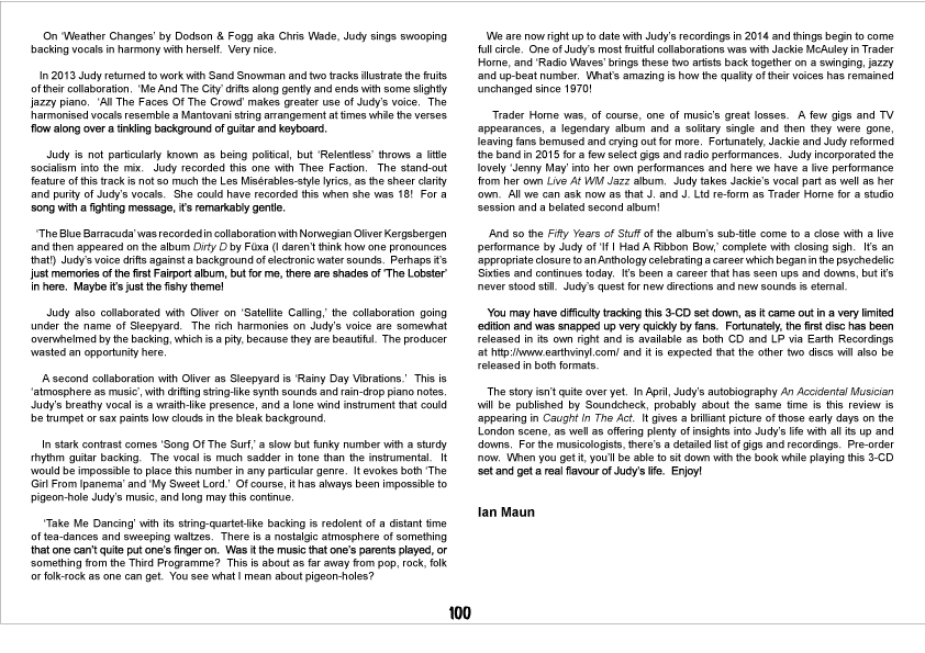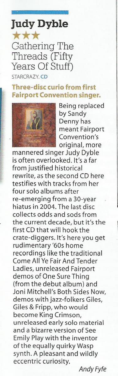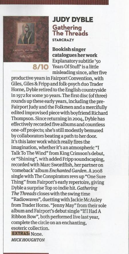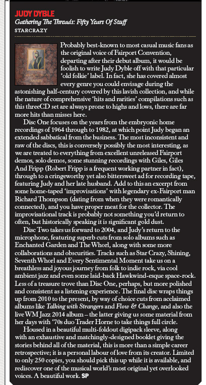 High or low, though, Judy Dyble is so natural – an integral part of the nature – that she’s mesmerizing throughout. With threads gathered into a fine tapestry, this collection opens the doors to her second spring: she’s a treasure, indeed.