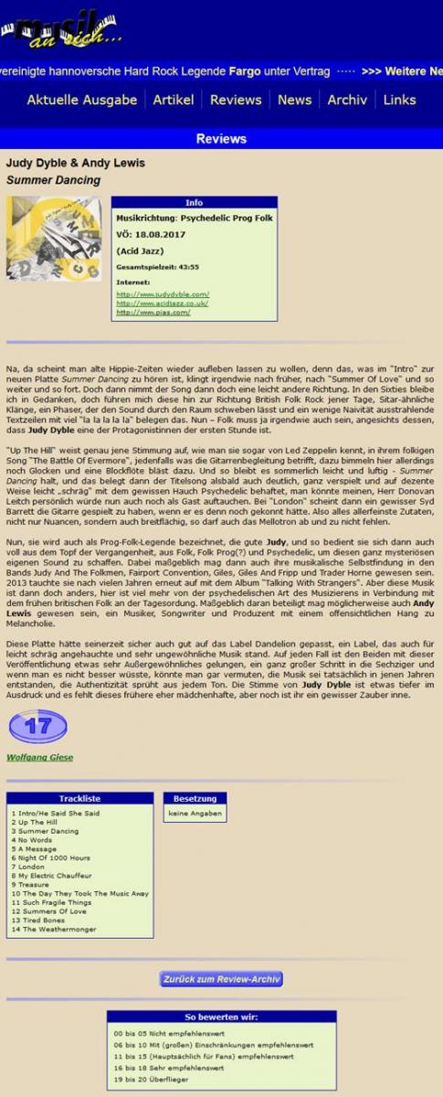 Summer Dancing never fails to surprise and at times astonish. This is the album that could help Judy Dyble seduce a whole new generation of fans just like at the start of her wayward career.
