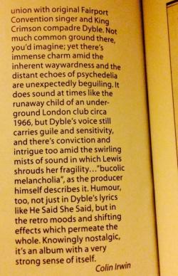 “…made of the very stuff of British psychedelia, an obsession with childhood, the country and the city. It emerges from a place somewhere between Broadcast, the soundtrack to The Wicker Man and Stereolab.”
