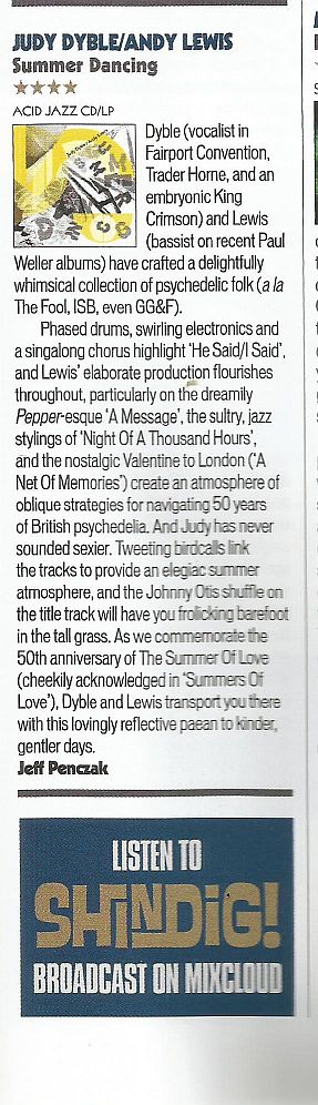 The album Summer Dancing by Judy Dyble and Andy Lewis was released in 2017 and is something of a fine cuckoo in pop’s nest which has a cultural background and set of connections that make it seem that as though it should only really exist in some alternate left-field pop universe.